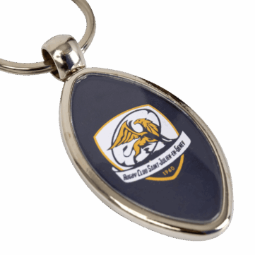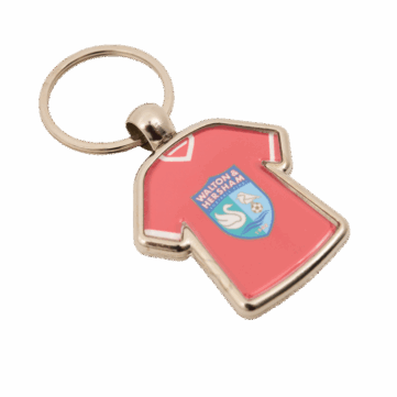 Custom lapel pins and keychains – our sturdy metal lapel pins are printed in full colour and produced in China with about a four-week turnaround. Fans wear them proudly on jackets, hats or bags, and clubs often use them as fund-raising gifts or match-day giveaways. The sports keyring offers the same high-quality finish but comes with a plexiglass cover and can be customised on both sides; choose from football, basketball, rugby, golf or jersey-shaped designs.