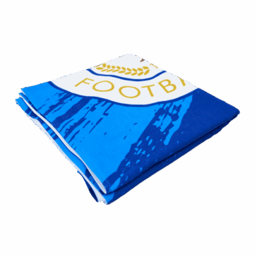 Warmth and comfort accessories – the collection includes several cosy items. The custom blanket is made from 100 % polyester with a thick synthetic sheepskin backing (120 × 150 cm) and features vibrant full-colour printing on one side. It’s perfect for staying warm at outdoor games or adding club colours to sofas at home. For athletes and supporters sitting on cold benches, the stadium cushion offers extra comfort. It has a waterproof polyester outer, certified foam filling and full-colour printing; the standard folding version measures 36 × 26 cm and folds to 18 cm. Professional teams can also opt for the dug-out blanket, a double-layer softshell blanket lined with fleece. It’s water- and wind-proof and includes hand pockets, optional PVC reinforcement and even electric heating.