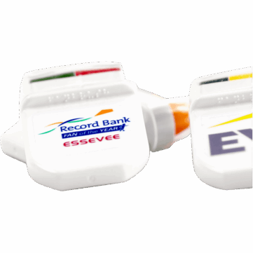 Thundersticks and noise-makers – Liven up matches with biodegradable clapsticks made from a soft biopolymer derived from potato starch and a recyclable paper straw. Each pair measures about 600 × 100 mm and can be printed on both sides in one to three colours; full-colour printing is available for orders of 3,000 pairs or more. These thundersticks are produced in Asia with a three- to six-week lead time. Basic coloured sticks are also stocked (green, yellow, blue, orange, red, and black) for simple one-colour logos.