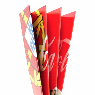 Hand flags and paper pennants – Create a sea of colour at your next event with full-colour printed hand flags made from flame-retardant polyester. These flags measure either 20 × 30 cm or 40 × 60 cm, come with a plastic pole (wooden poles are available), and are made in Europe or Turkey with a delivery time of around four weeks. For cost-effective giveaways, the paper hand flags use strong 150 gsm paper and a PVC stick. They are produced in Europe, available in four sizes, and packaged in boxes of 1,000 for easy distribution. Full-colour printing allows unlimited design possibilities, including different images on the front and back, and a fire-resistant version is available for venues requiring extra safety.