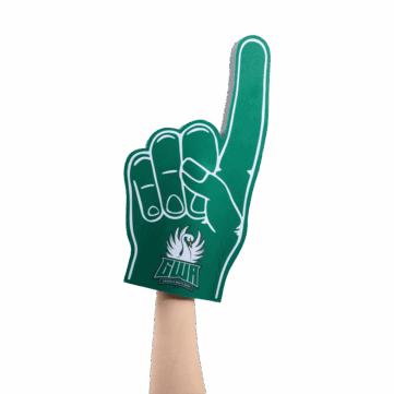 Foam giant hands – Inspired by American sports, these oversized hands let fans show their team pride in a big way. Made from polyurethane foam, they are available in white, light blue, royal blue, red, and dark grey, and include a slot for the wearer’s hand. Standard size is approximately 450 × 220 × 28 mm, and they can be printed in one colour or full colour. The hands are manufactured in Europe and delivered in about four weeks. Fireproof foam versions, thumbs-up or fist shapes, and fully custom shapes from 500 pieces ensure there is a giant hand for every team.