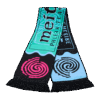Woven scarves can contain a lot more details than a knitted scarf. It is even possible to reproduce a person’s face in great detail. The woven scarves are also a good solution for logos with lots of small details.